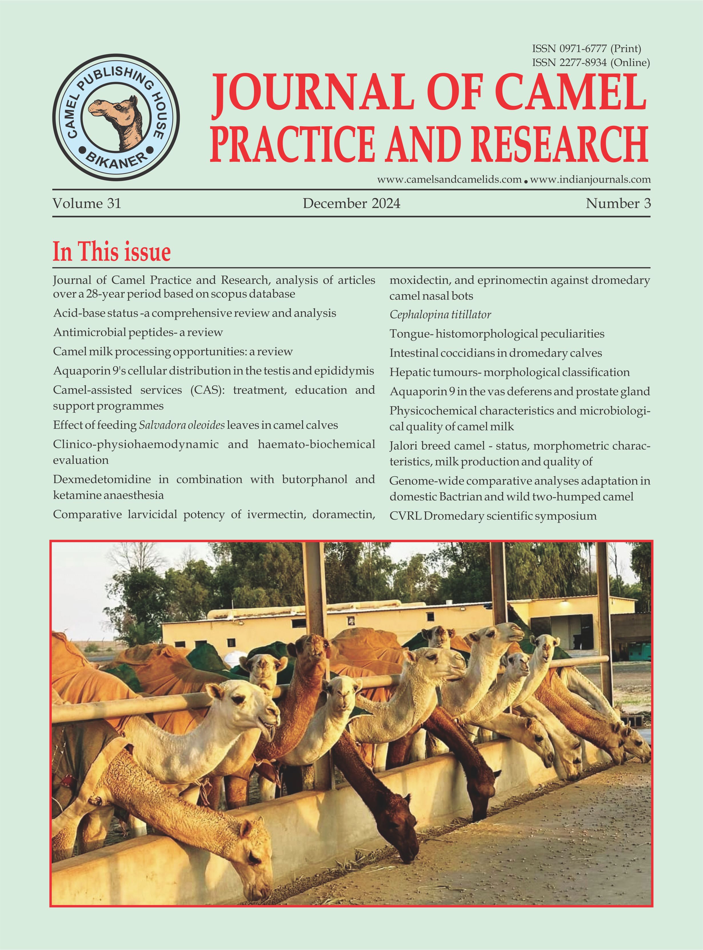 The Journal of Camel Practice and Research (JCPR) is the premier journal for camel practice, research and science and serves as the leading source of new knowledge and perspective in this field. The Journal of Camel Practice and Research (JCPR) is brought out as a print and online issues, blind peer reviewed international journal with an aim to reach the readers with the latest advancements in the camel practice and research. JCPR is a unique journal in its discipline by setting standards in the field of camel practice and research. In our triannual issues, JCPR publishes original and high quality research and clinical articles from all over the world.